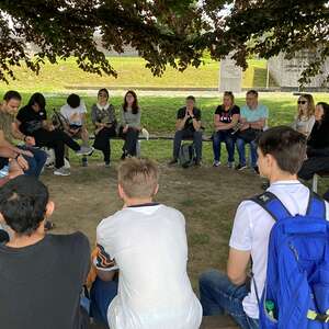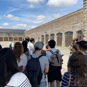 Nach einer geführten Tour durch die Gedenkstätte des ehemaligen Konzentrationslagers lassen wir den Tag bei Essen und Getränken in der KHG ausklingen.