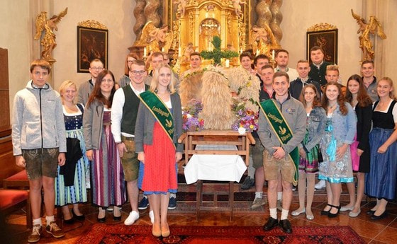 Bei leichtem Nieselregen bewegte sich die lange Prozession, angeführt von den Solingern und gefolgt vom Herrn Pfarrer und den Ministranten, der Landjugend mit der prächtig geschmückten Erntekrone, den Bäuerinnen, den Goldhaubenfrauen, der Chorgemeinschaft und den Abordnungen der Vereine. Männer, Frauen und Kinder bildeten den Abschluss.