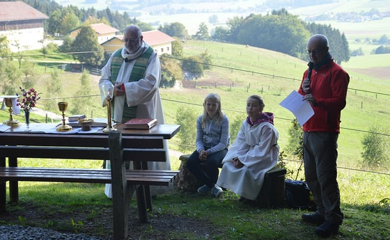 Die Wanderung zur Bergmesse beim Adelsberger-Kreuz in Kleinweiffendorf/ Mettmach, veranstaltet vom KBW Aspach, wurde von Aspach weg von 29 jungen und älteren Wanderfreunden „in Angriff genommen“.