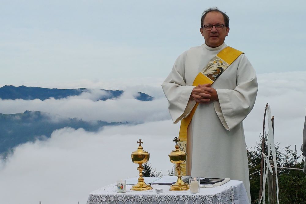 Musikalisch umrahmt wurde die Wort-Gottes-Feier mit Gitarre und Querflöte. Auch das Wetter spielte mit. Und so konnte die kleine Feiergemeinde über den Nebelschwaden die Sicht auf die umliegenden Berge und den See genießen.