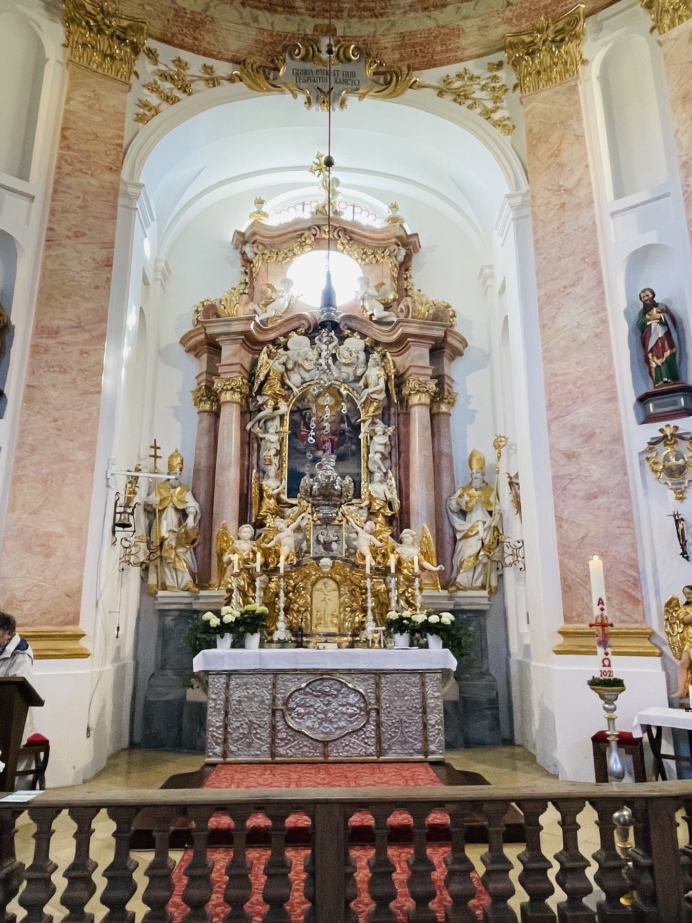 Fahrt zur Markgrafen-und Dreifaltigkeitskirche Neudrossenfeld. Über Nürnberg zur Benediktinerabtei Plankstetten. Durch das Altmühltal zur Wallfahrtskirche Mariaort bei Regensburg – Heimreise nach Ostermiething