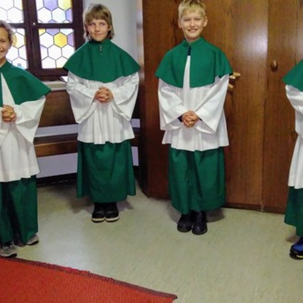 Es freut uns, dass sich wieder vier Kinder entschieden haben, bei den Gottesdiensten zu ministrieren. Bei ihrer Aufnahme wurden sie von älteren "Minis", so die häufig verwendete Abkürzung, unterstützt.