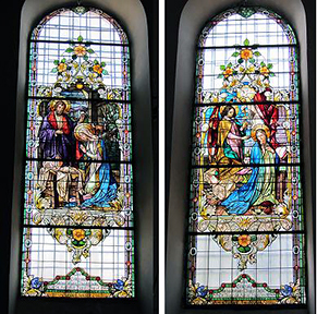 Aus Anlass des 60-jährigen Regierungsjubiläums von Kaiser Franz Joseph I. und des 50-jährigen Priesterjubiläums von Pabst Pius X. erhielt die Kirche im Jahre 1908 zwei Glasgemälde in gemäßigtem Jugendstil (Verkündigung an Maria, Geburt Christi). Dem folgten bis 1935 weitere Glasgemälde-Stiftungen.