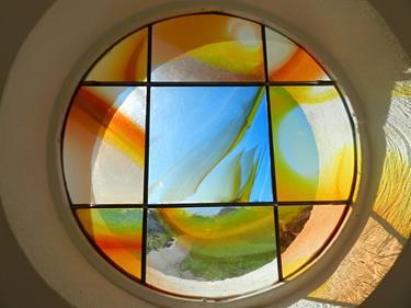 Die fließenden Linien des verwendeten Glases sollen symbolisch den Fluss des Lebens darstellen. Je nach Tages- und Jahreszeit ändern sich die Farben für den Betrachter.