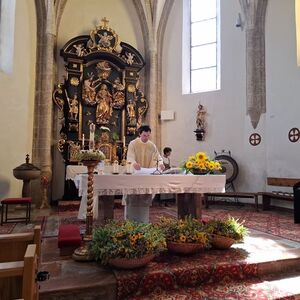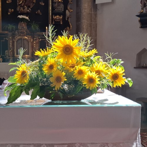 Danke an das Team der Goldhaubengruppe Tarsdorf, die heute die Kirchenbesucher wieder mit duftenden Kräuterbüscherln beschenkten. Die Vorzüge des Rosmarin als Heilkraut und Gewürz wurden beim Gottesdienst vorgesellt. Kaplan Franziskus segnete die wohlriechenen Kräuter.