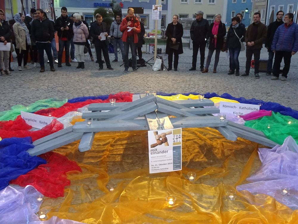 Es wurde für das Interreligiöse Gebet unter dem Motto „Miteinander leben ist schöner“ vorbereitet. Mehr als 100 Personen folgten der Einladung der Vertreter der verschiedenen Glaubensgemeinschaften, um ein Zeichen für ein gutes Miteinander in unserem Land zu setzen. „Unsere Religionen können Verbindungen herstellen und zu Brücken werden in unserer bunten Gesellschaft“, hieß es in der Begrüßung.