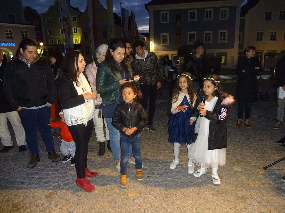 Den Beginn machte der Vertreter des sunnitischen Islam mit einer Erklärung zum Koran und einem liturgischen Gesang. Als Beitrag der kath. Kirche wurde der Sonnengesang des Hl. Franz von Assisi gesungen, bevor aus der Bergpredigt die Botschaft „Macht euch keine Sorgen, euer Vater weiß, was ihr braucht“ gelesen wurde. Viel Applaus gab es für zwei Kinder aus der Koptisch-Orthodoxen Kirche für ihre beiden Lieder, die ein starkes Gottvertrauen in den orthodoxen Kirchen ausdrückten. Eine klare Positionierung für Toleranz, weil Allah alle Menschen liebt, brachte der Beitrag eines Schülers aus Afghanistan, der der schiitischen Glaubensrichtung des Islam angehört. Eine Auslegung der Wochenspruchs „Lass dich nicht vom Bösen überwinden, sondern überwinde das Böse mit Gutem“ und das allen christlichen Kirchen gemeinsame Vater Unser bildeten den Beitrag der Evangelischen Kirche. Mit der Nennung von Notsituationen in verschiedenen Bereichen und einer Minute Schweigen wurde das gemeinsame Gebet abgeschlossen. Bei Tee und Kuchen klang der Abend aus.