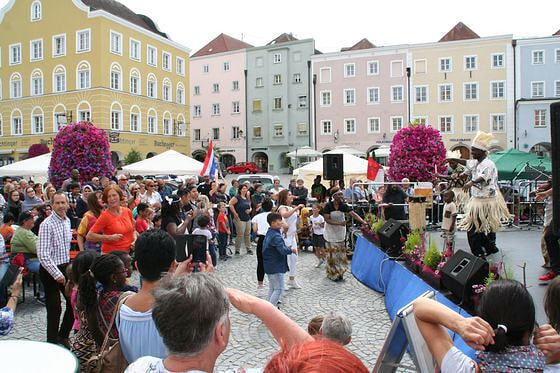 Diese bunte Veranstaltung bot erneut die Gelegenheit, in verschiedene Kulturen einzutauchen und sie mit allen Sinnen zu erleben. Die philippinische Tanzgruppe "Leron Leron Senta", "Izuba" aus Afrika und musikalische Klänge aus dem arabischen Raum von Shahim Khalaf begeisterten die BesucherInnen. Auch österreichische Musik war durch die "Junge Wenger Tanzlmusi" und ein "Alphorntrio“ aus Wernstein vertreten. Dass kulturenübergreifendes Musizieren Spaß macht, zeigten der "Begegnungschor" der HAK/HAS Schärding, die Gruppe "Multikulti" aus Schwanenstadt und das Trio "Avustürk".